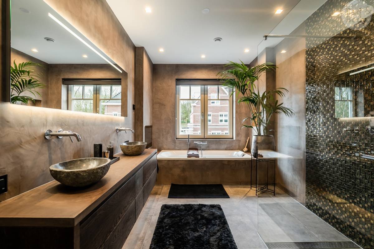 Materialen bepalen voor een groot deel hoe luxe een badkamer aanvoelt. In hotels ziet u zelden drukke patronen of glanzende oppervlakken. In plaats daarvan draait het om textuur, diepte en een hoogwaardige afwerking. Natuursteen en natuursteenlook zijn populaire keuzes voor een hotelgevoel. Ze ogen rijk en tijdloos, zeker wanneer u kiest voor grotere tegels met weinig voegen. Ook betonlook of strak stucwerk draagt bij aan een rustige, luxe uitstraling, doordat wanden en vloeren naadloos in elkaar overlopen.